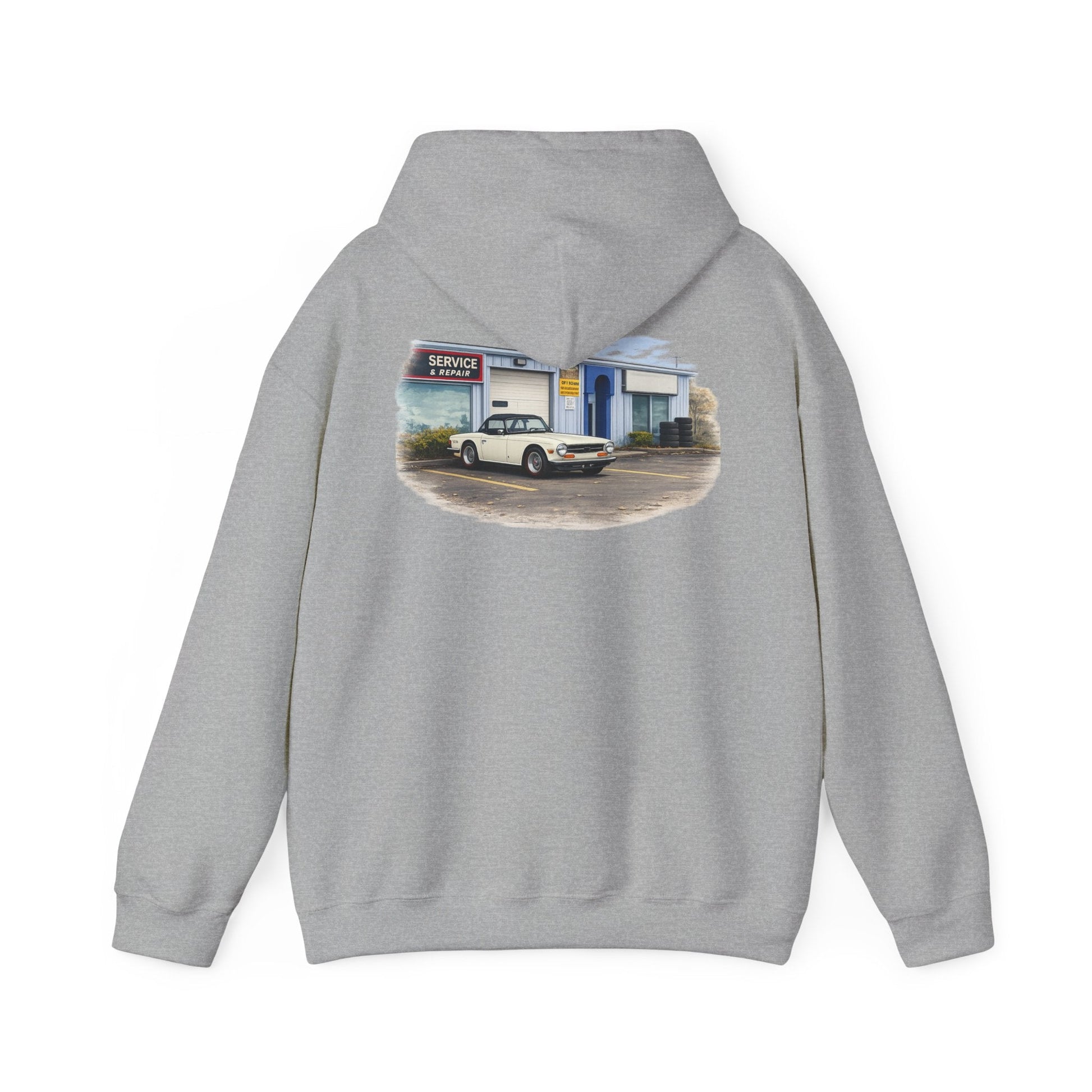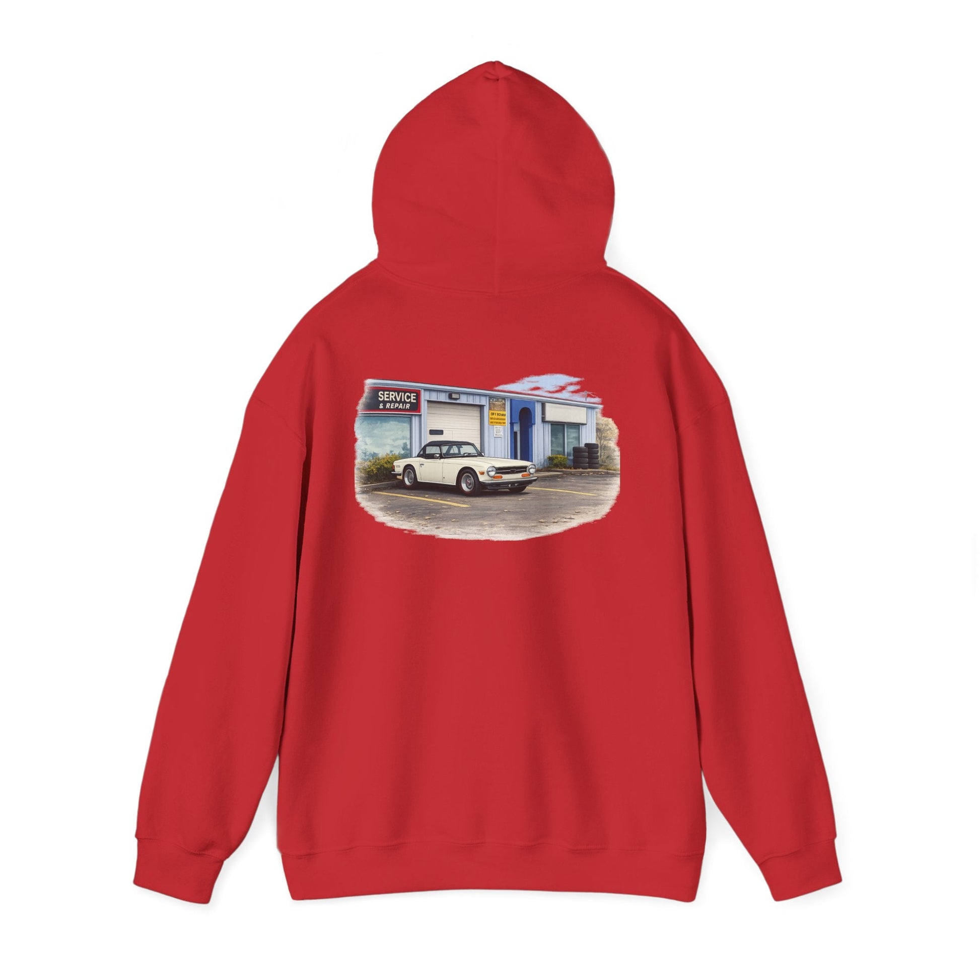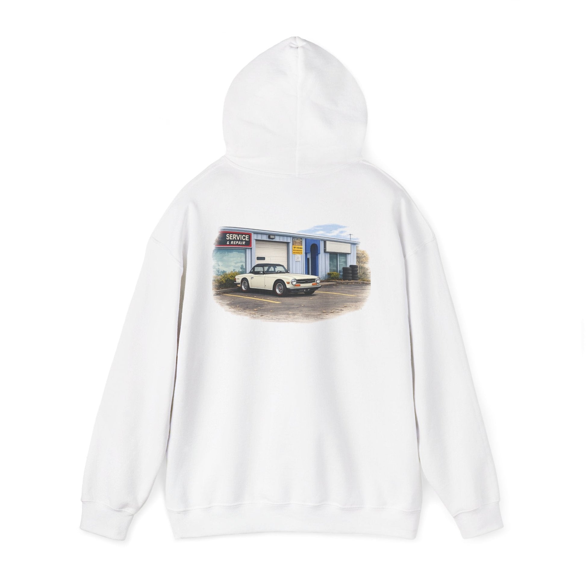 Classic Vintage Car Hooded Sweatshirt – Retro Service Station Graphic Hoodie