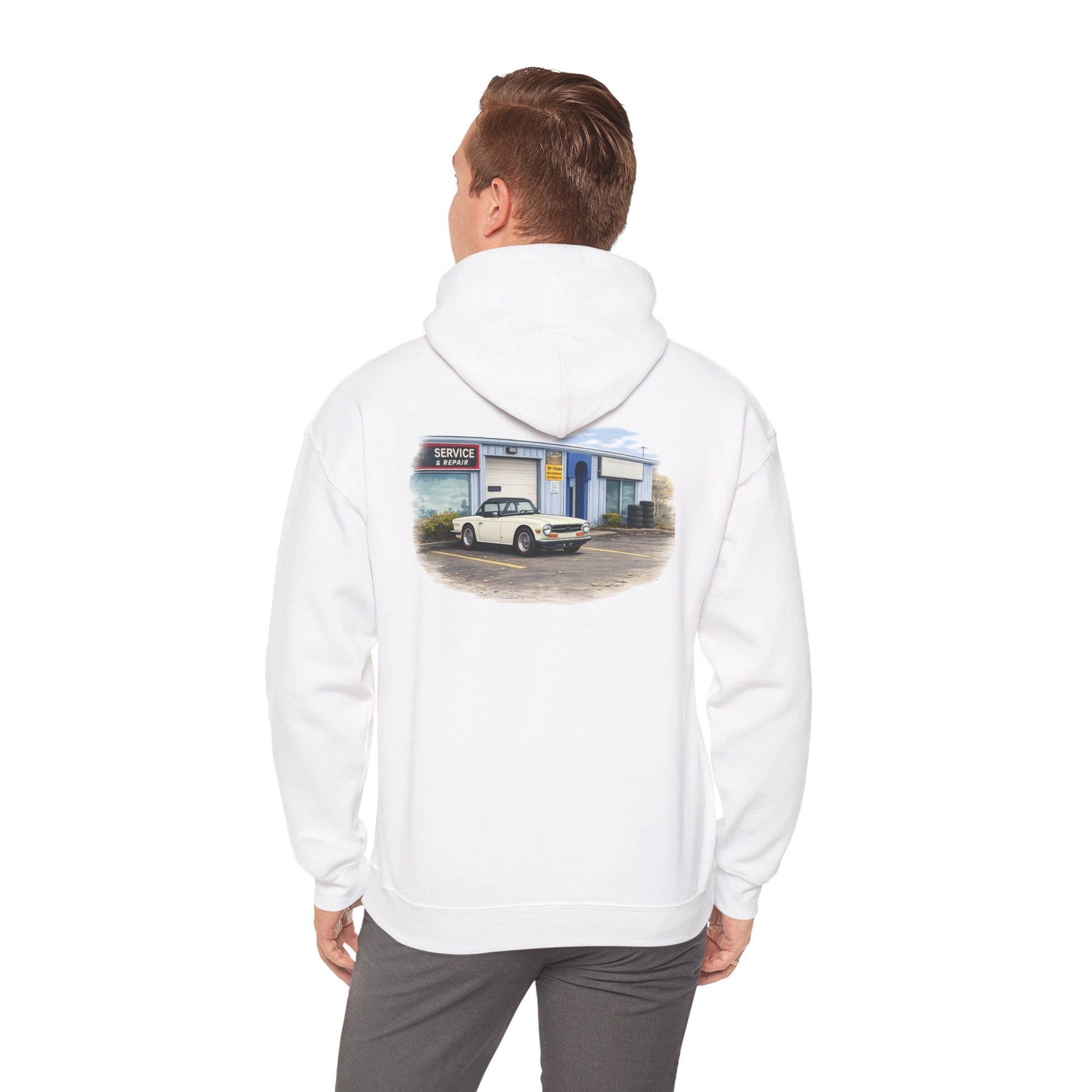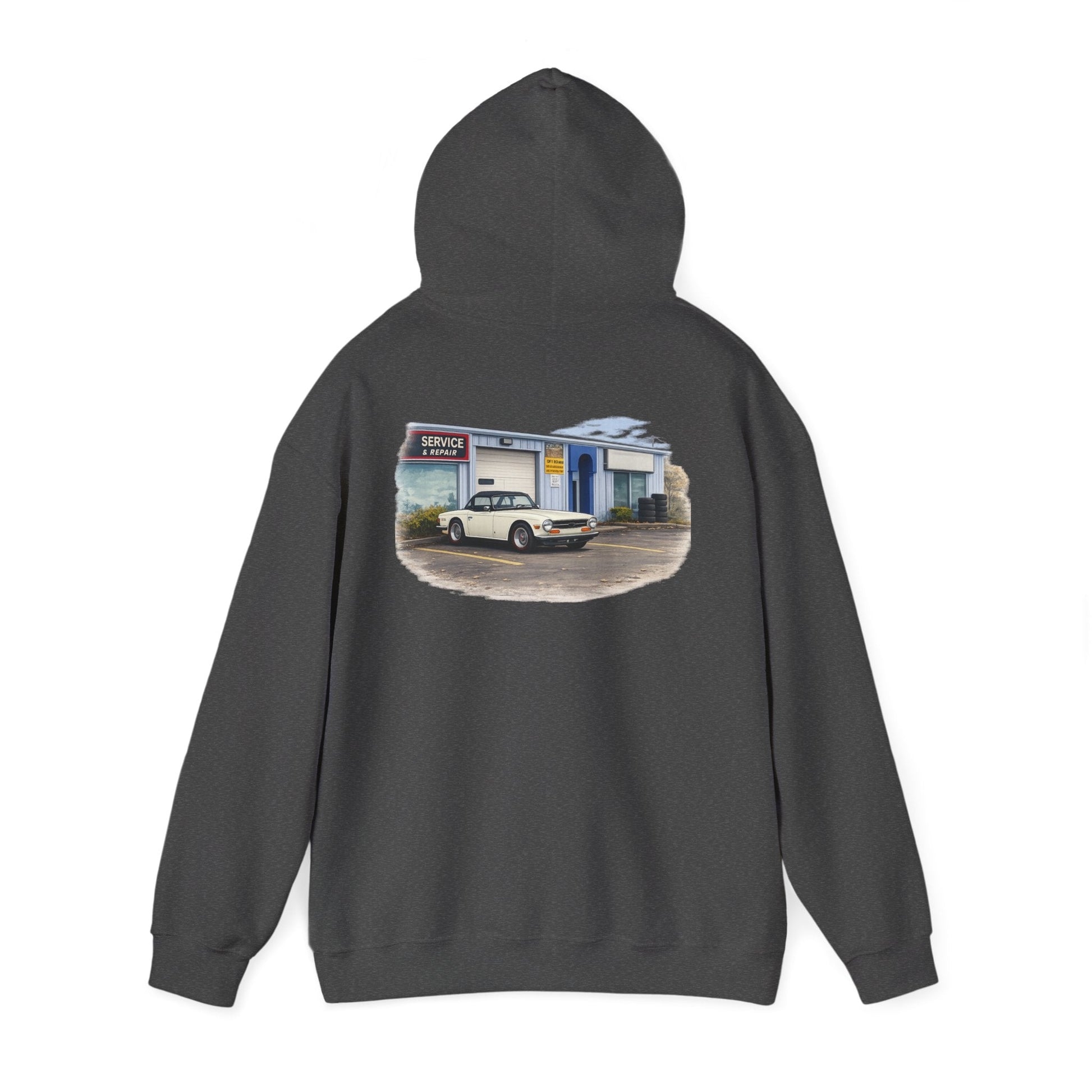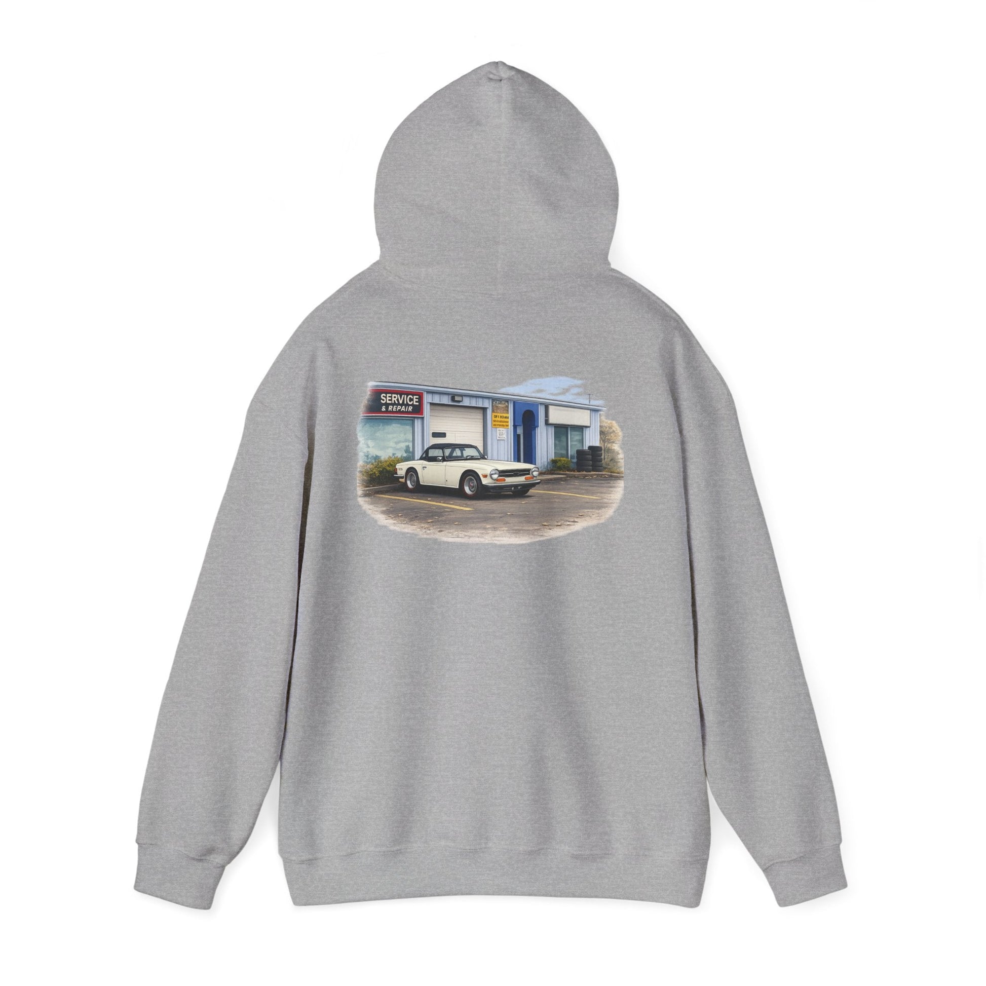 Classic Vintage Car Hooded Sweatshirt – Retro Service Station Graphic Hoodie