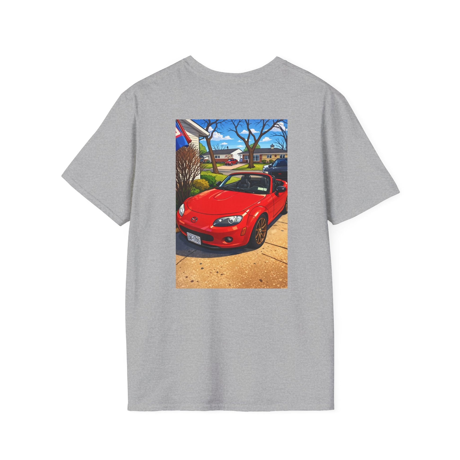 This lightweight cotton tee carries a bright, personal energy — a snapshot moment printed boldly on the back that reads like a memory you wear. The image of a glossy red car parked under blue skies and bare-branched trees feels like an afternoon of small freedoms: the hum of an engine, sun on the hood, and the quiet pride of something lovingly maintained. Stitch details like a ribbed collar and shoulder tape keep the silhouette crisp, while the soft ring-spun cotton body drapes easy and breathable. Wear it on weekend drives, casual meet-ups with fellow car lovers, or whenever you want to bring a little sunny nostalgia into your day.